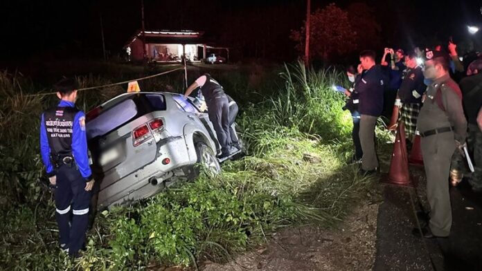 วันที่ 19 ธันวาคม 2568 ร.ต.อ.สุนทร ยิ่งคง รองสารวัตร(สอบสวน) สภ.ป่าบอน จังหวัดพัทลุง รับแจ้งเหตุคนร้ายใช้อาวุธลั่นไกรถยนต์ มีผู้เสียชีวิต เหตุเกิดบนถนนสายบ้านพรุโอน-ท่าปราง หมู่ 1 ตำบลทุ่งนารี อำเภอป่าบอน จังหวัดพัทลุง ซึ่งเป็นพื้นที่รอยต่อกับตำบลท่าชะมวง อำเภอรัตภูมิ จังหวัดสงขลา จึงนำกำลังฝ่ายสืบสวนพร้อมเจ้าหน้าที่ตำรวจพิสูจน์หลักฐานเข้าตรวจสอบ