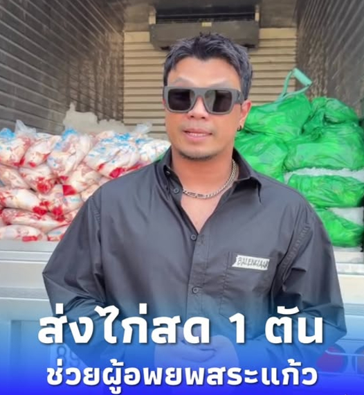 ใจบุญไม่เคยหาย “หนุ่ม กะลา” ส่งไก่สด 1 ตัน ช่วยผู้อพยพสระแก้ว