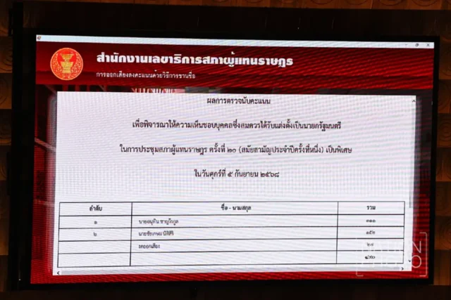 จากผลการโหวตเลือกนายกรัฐมนตรี ที่ทาง นายอนุทิน ชาญวีรกูล จากพรรคภูมิใจไทย ได้รับเสียงโหวตท่วมท้น นั่งนายกฯคนที่32ของไทย โดยที่ประชุมสภาฯ ได้ลงมติ ให้ความเห็นชอบนายอนุทิน เป็นนายกรัฐมนตรีคนที่32 ด้วยคะแนนเสียง  311 คะแน เกินกึ่งหนึ่งของเสียงทั้งหมดในสภาฯ ขณะที่ นาย ชัยเกษม นิติสิริ แคนดิเดตนายกรัฐมนตรีจากพรรคเพื่อไทย ได้ 152 คะแนน ซึ่งมีการงดออกเสียง 27 คะแนน