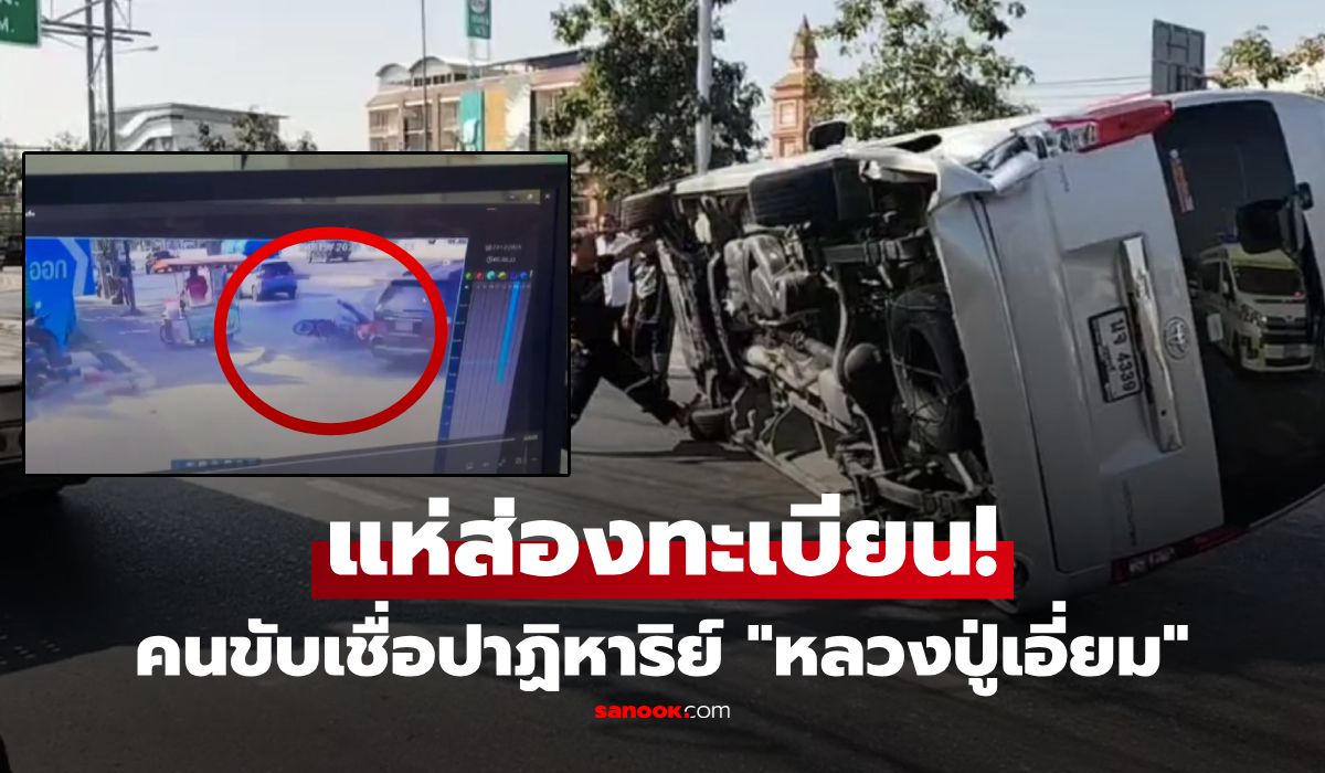 ขนลุก! วงจรปิดจับภาพรถตู้คว่ำหลายตลบ คนขับ-ปลัดรอดตายไร้รอยขีดข่วน เชื่อบารมี “หลวงปู่เอี่ยม” รุ่นนี้
