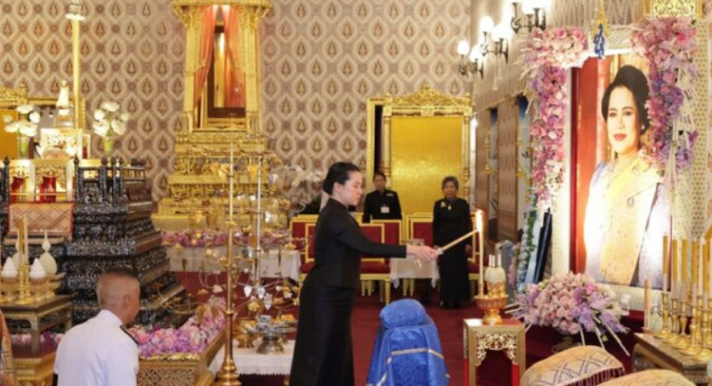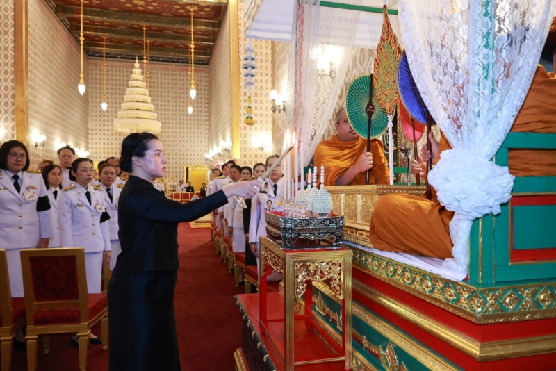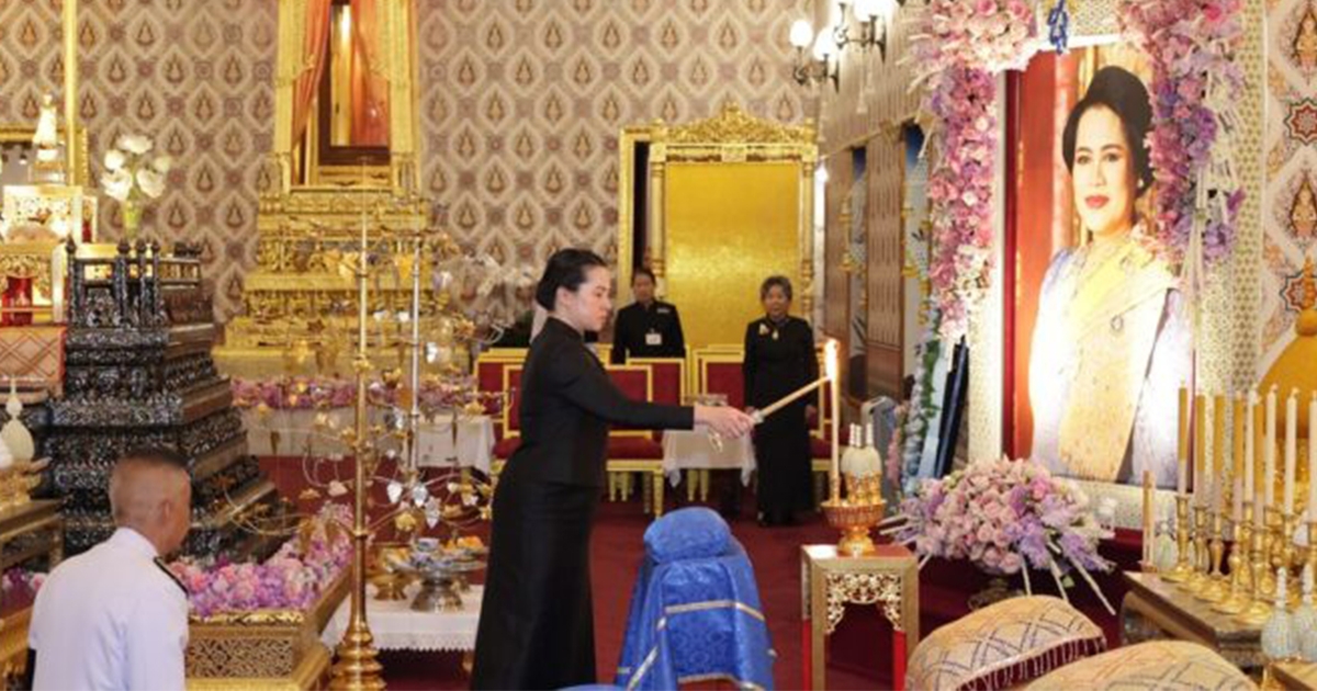 เมื่อเวลา 06.51 น. วันที่ 27 ธันวาคม 2568 ท่านผู้หญิงพลอยไพลิน เจนเซ่น บำเพ็ญพระราชกุศลถวายภัตตาหารเช้า แด่พระพิธีธรรม ที่สวดพระอภิธรรมพระบรมศพสมเด็จพระนางเจ้าสิริกิติ์ พระบรมราชินีนาถ พระบรมราชชนนีพันปีหลวง ณ พระที่นั่งดุสิตมหาปราสาท ในพระบรมมหาราชวัง