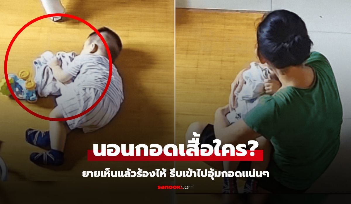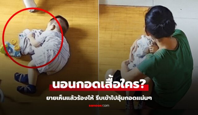 บีบหัวใจ… ยายร้องไห้ เห็นหลานชาย “นอนกอดเสื้อ” ผล็อยหลับใน 3 วิ รีบอุ้มมากอดแน่นๆ