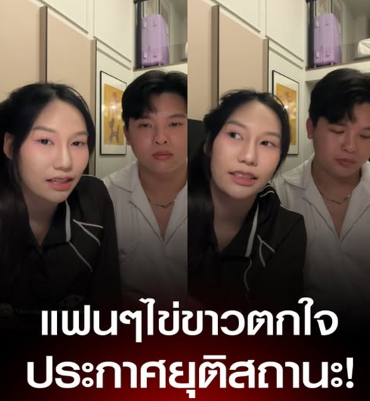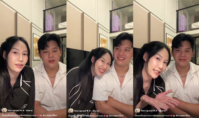 “เราเห็นว่าวันนี้น่าจะเป็นโอกาสที่จะได้ออกมาบอกทุกคน เรือล่ม พี่ๆไม่ต้องเสียใจเราเลิกกันดี ยังเป็นพี่น้อง เป็นเพื่อนร่วมงานที่ดีต่อกัน เรายังทำงานกันได้เหมือนเดิม แค่ไม่ได้ใช้สถานะว่าแฟนเหมือนเดิมแล้ว (เต็นท์ : ก็เป็นพี่น้องกันแทน ส่วนเรื่องงานยังเหมือนเดิม ยังเห็นแมวทุกตัวเหมือนเดิม)”