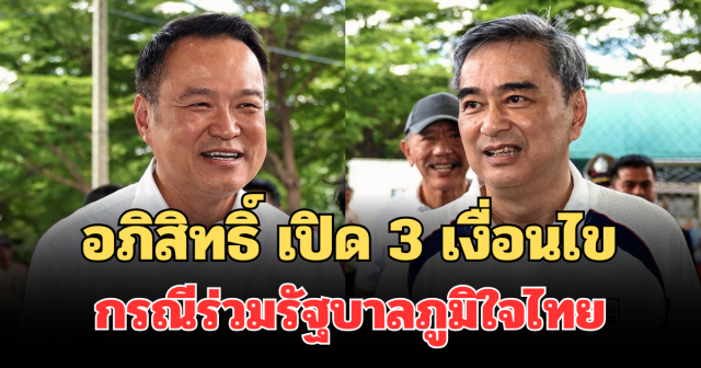 เมื่อถูกถามว่า หากไม่มี พรรคกล้าธรรม ร่วมรัฐบาล พรรคประชาธิปัตย์จะสามารถพิจารณาเข้าร่วมได้หรือไม่ นายอภิสิทธิ์ระบุว่า ยังต้องหารือในรายละเอียดเงื่อนไขอื่น ๆ โดยเฉพาะประเด็นเงินเทาและการครอบงำทางการเมือง