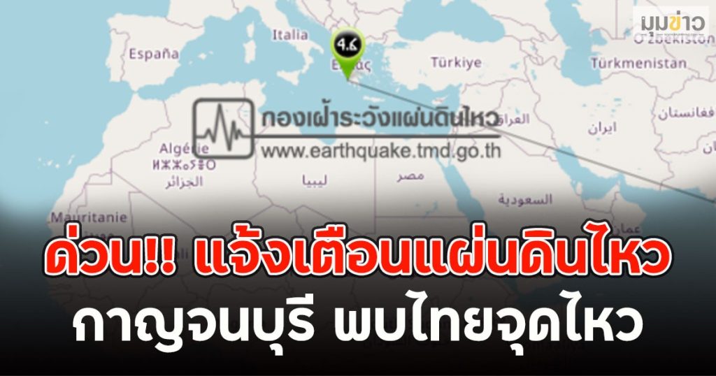 2026-02-19 02:57:47 | แรงสั่นสะเทือนขนาด 2.3 แมกนิจูด ลึกลงไปใต้พื้นดิน 1 กิโลเมตรประเทศเมียนมา ต.เขาโจด อ.ศรีสวัสดิ์ จ.กาญจนบุรี
