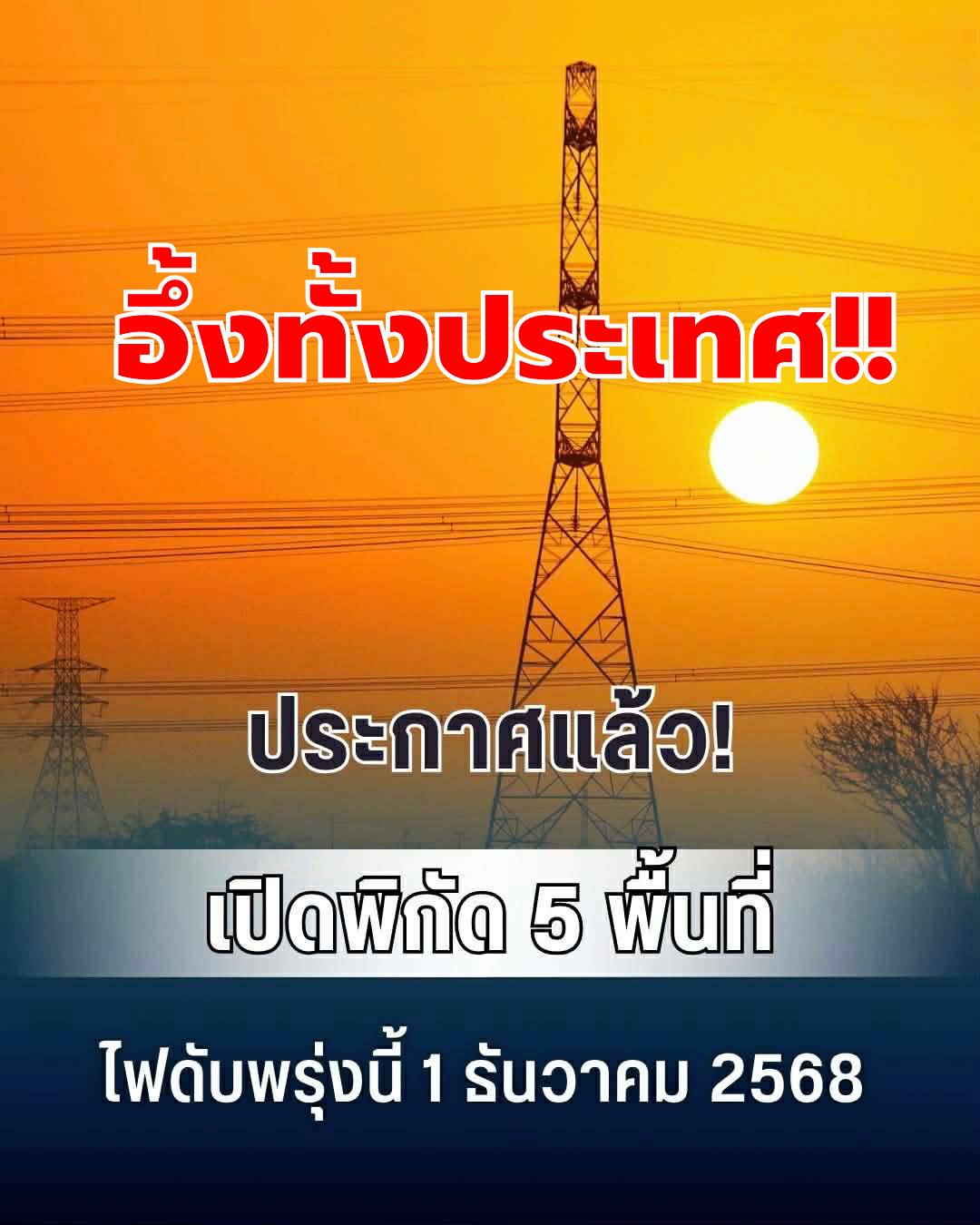 ในวันที่ 1 ธันวาคม 2568 การไฟฟ้านครหลวง (กฟน.) ประกาศว่ามีความจำเป็นต้องดับไฟในพื้นที่ของกรุงเทพมหานคร สมุทรปราการ และนนทบุรี เพื่อพัฒนาหรือบำรุงรักษาระบบการจ่ายกระแสไฟฟ้าให้มีประสิทธิภาพและปลอดภัยต่อการปฏิบัติงาน กฟน. จึงจำเป็นต้องงดจ่ายกระแสไฟเป็นการชั่วคราวในพื้นที่จำนวน 5 จุด ดังนี้