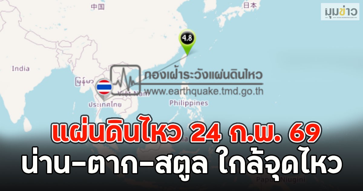 24 ก.พ. 69 เหตุการณ์แผ่นดินไหวภายในประเทศและใกล้เคียงล่าสุด