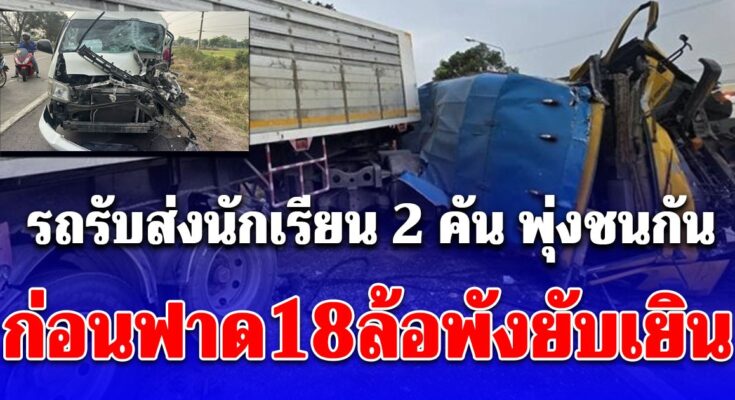 จากการสอบสวนเบื้องต้นทราบว่า รถตู้นักเรียนได้เสียหลักพุ่งชนท้ายรถรับส่งนักเรียน ซึ่งเป็นรถสองแถว ก่อนที่รถทั้งสองคันจะฟาดไปชนกับรถบรรทุกพ่วง 18 ล้อ ที่จอดอยู่ข้างทาง โดยรถรับส่งนักเรียนทั้งสองคันมีนักเรียนโดยสารมาเต็มคัน