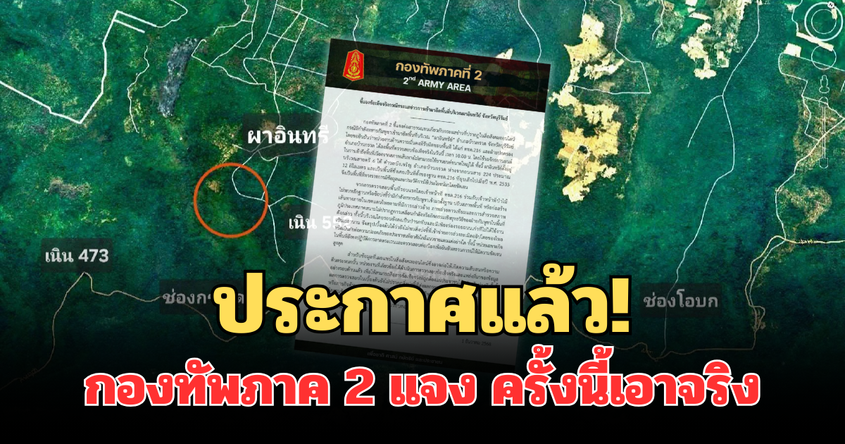 วันที่ 1 ธ.ค.2568 เพจกองทัพภาคที่ 2 ได้ชี้แจงข้อเท็จจริงถึงกรณีกระแสข่าวการเข้ามายึดพื้นที่บริเวณผาอินทรีย์ จังหวัดบุรีรัมย์ โดยระบุว่า